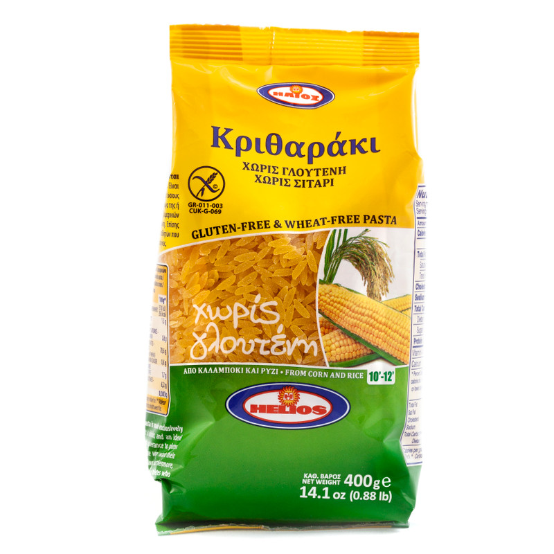 Helios gluten-free & wheat-free Orzo is a superior taste award pasta from corn and rice. It is delicious and an ideal solution for people with intolerance to gluten and its derivatives, and for those who want a different pasta flavor.