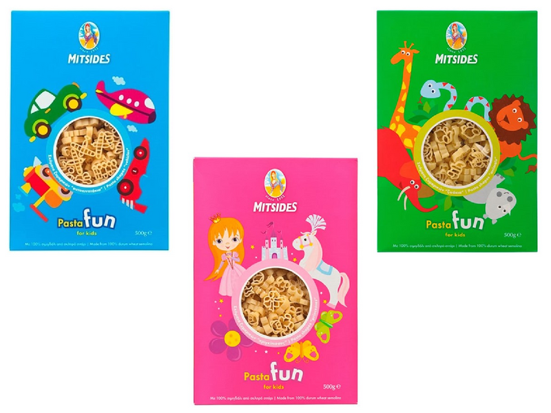 At the back of the pack you can see how pasta is made in Mitsidoupoli. Printed inside the pack there are crossword puzzles, colouring activities and many more hosted by our friends Roni Macaroni and Tina Spaghettina.